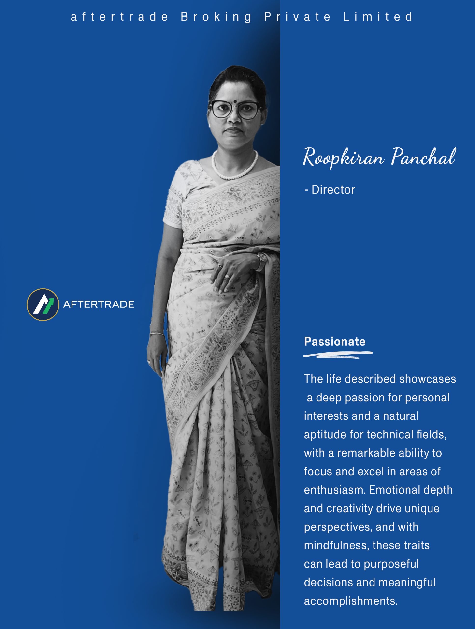 Dipika Parmar is the financial backbone of AfterTrade Broking, efficiently managing accounts with precision and integrity. Her expertise in financial operations ensures seamless processes, accurate reporting, and compliance. Dipika’s dedication to excellence drives the firm’s financial stability and reinforces AfterTrade’s commitment to transparency and trust.